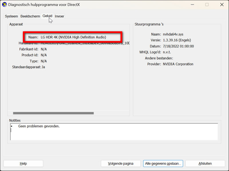 De betrouwbaarste manier om te bekijken welke geluidskaart je precies hebt, is met behulp van het systeemprogramma DxDiag. Dat gaat als volgt: