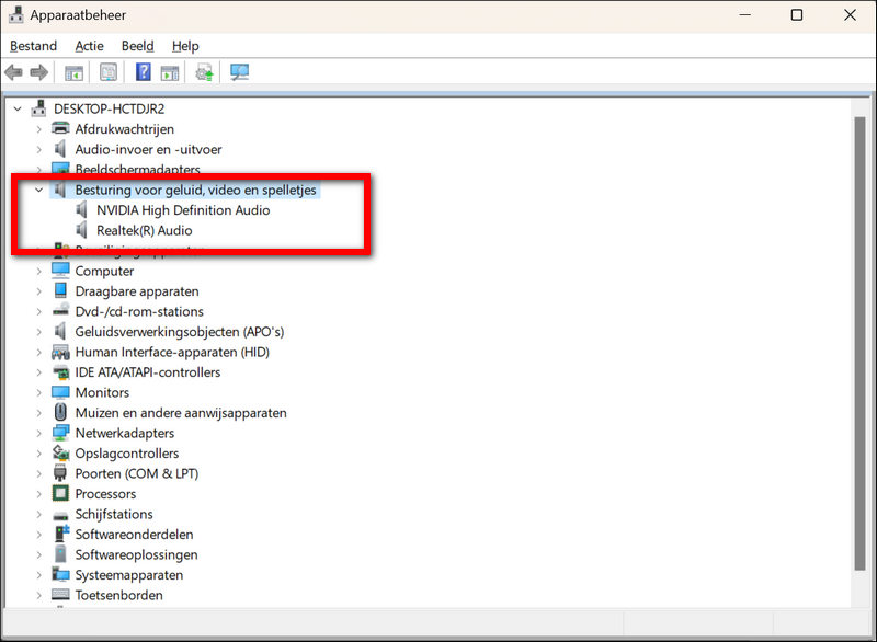 Of je computer meerdere “geluidskaarten” aan boord heeft, kun je als volgt zien: