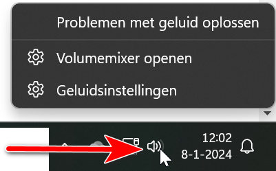 - Klik met de rechtermuisknop op het pictogram Geluid in het systeemvak, links van de klok.