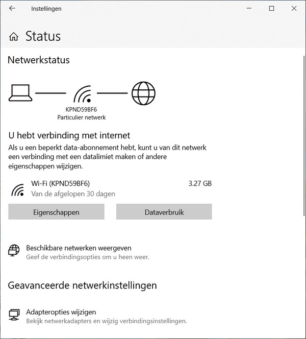 Via de optie Adapteropties wijzigen in het onderdeel Netwerkstatus kun je bekijken welke mogelijkheden om te verbinden met internet nog meer voorhanden zijn.