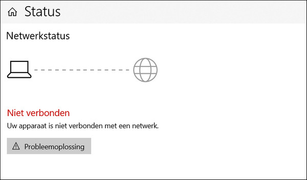 Wanneer je laptop geen verbinding heeft met een draadloos netwerk dan zal Netwerkstatus aangeven in grote rode letters: Niet verbonden.