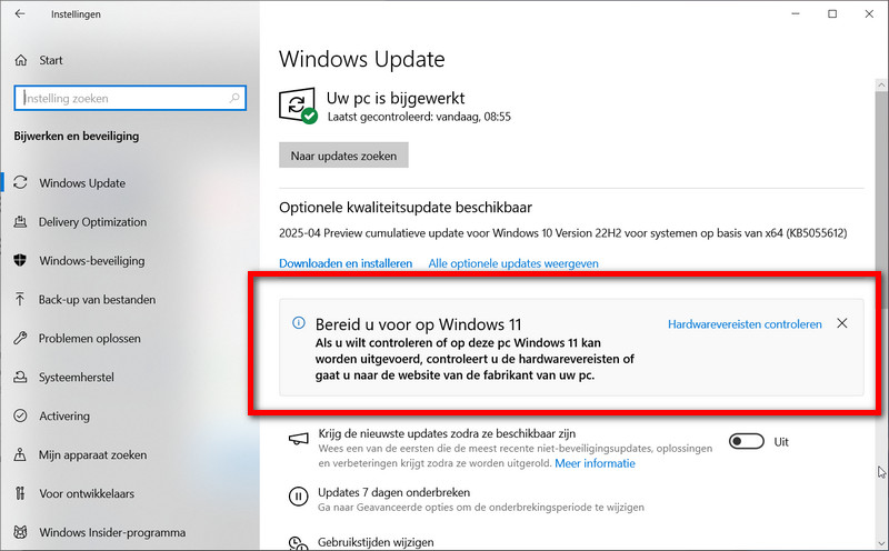 Nu begint dat anders te worden. Want in oktober 2025 stopt Microsoft met de ondersteuning van Windows 10. Wat onder andere betekent dat er niet langer bugfixes en beveiligingsupdates voor Windows 10 worden uitgebracht.