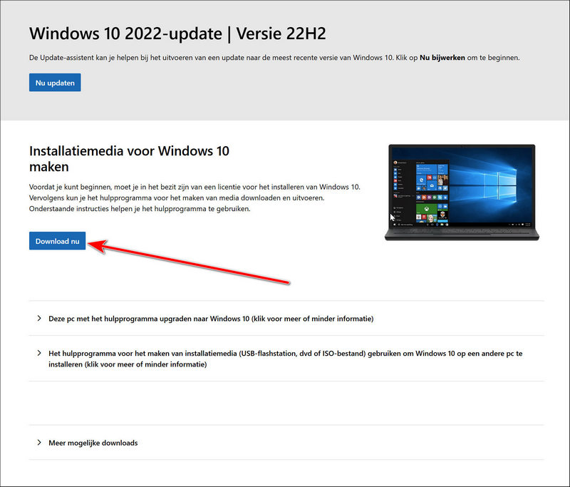 - De installatie van Windows 10 starten vanaf een werkende Windows pc.