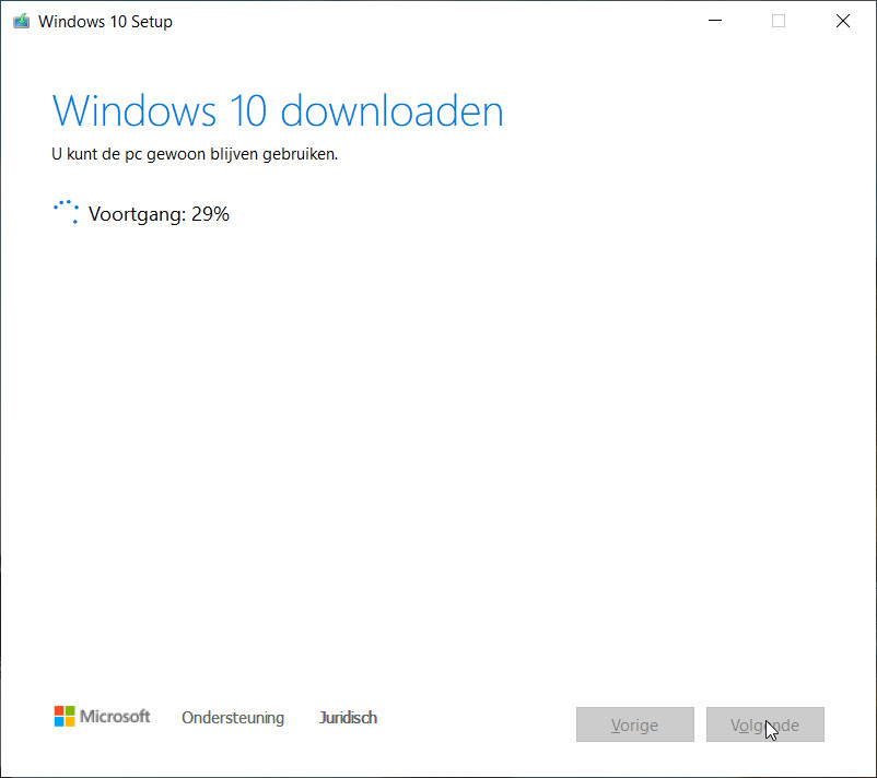 - Er zal nu met het maken van de Windows 10 installatie USB-stick worden begonnen. Tijdens het maken ervan wordt de voortgang getoond.